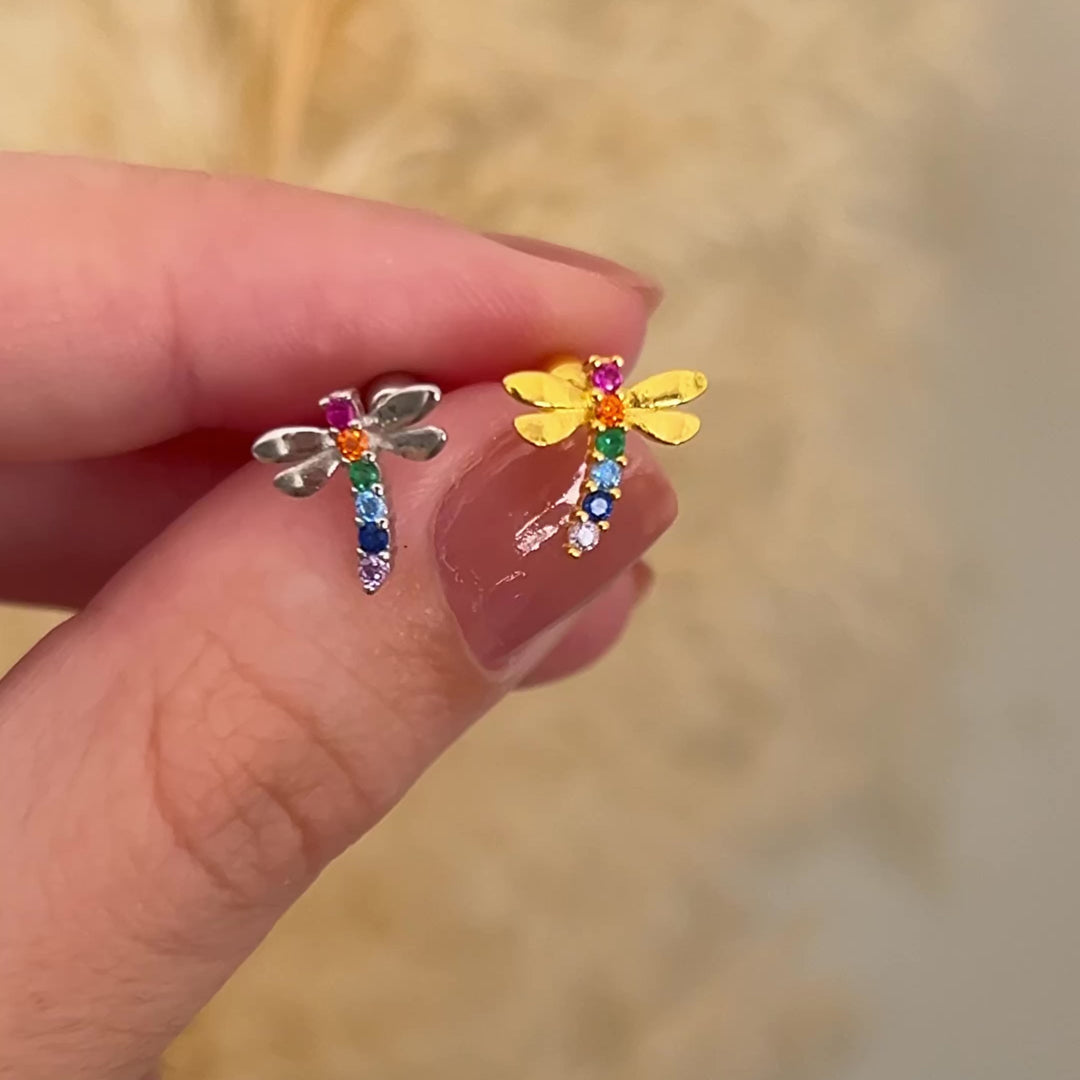 Una joya en miniatura que captura la ligereza de una libélula. Su cuerpo está decorado con circonitas engastadas en tonos arcoíris, que aportan color y brillo, mientras que las alas lisas y pulidas le dan un acabado elegante y llamativo. Cuenta con cierre de bola que se desenrosca por la parte trasera, ideal para un ajuste seguro y cómodo incluso en piercings como hélix, tragus o lóbulo. Una joya delicada, alegre y con inspiración en la naturaleza.